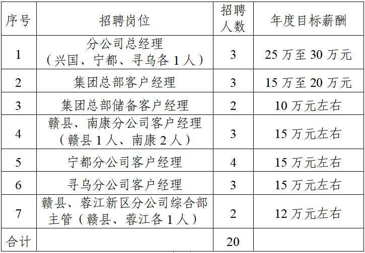 具體招聘崗位要求見附件1 贛州市融資擔(dān)保集團(tuán)有限公司公開招聘職位表。